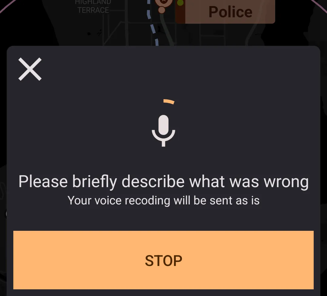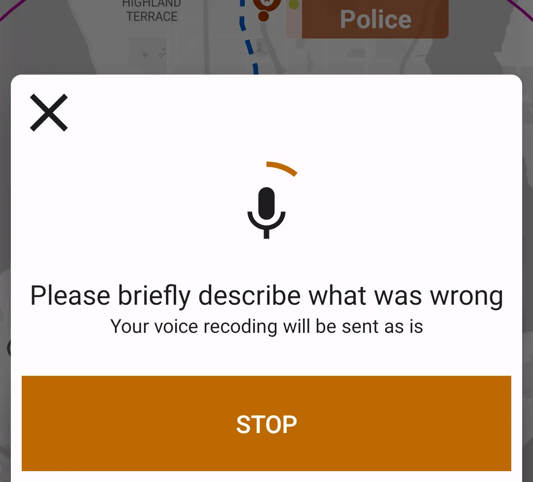 You may tap the "bug" button in the in-drive menu and record an audio message with a bug report when this preference is enabled. Your voice recording is sent to the developer as is. Together with the voice recording, the entire application state is sent as well. Please remember that the "entire application state" includes your location and short location history (up to 10 minutes). At the same time, no data which may let me identify the user is collected (e.g., no device ID, Google account, or other similar data is submitted); however, you may inadvertently disclose sensitive data such as home address.